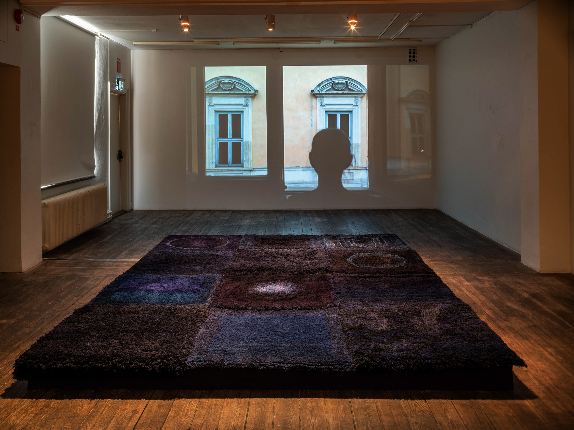 Korrigering – Indigo Rug, Lilla Galleriet Konstnärshuset, filmprojektion och ljudmatta