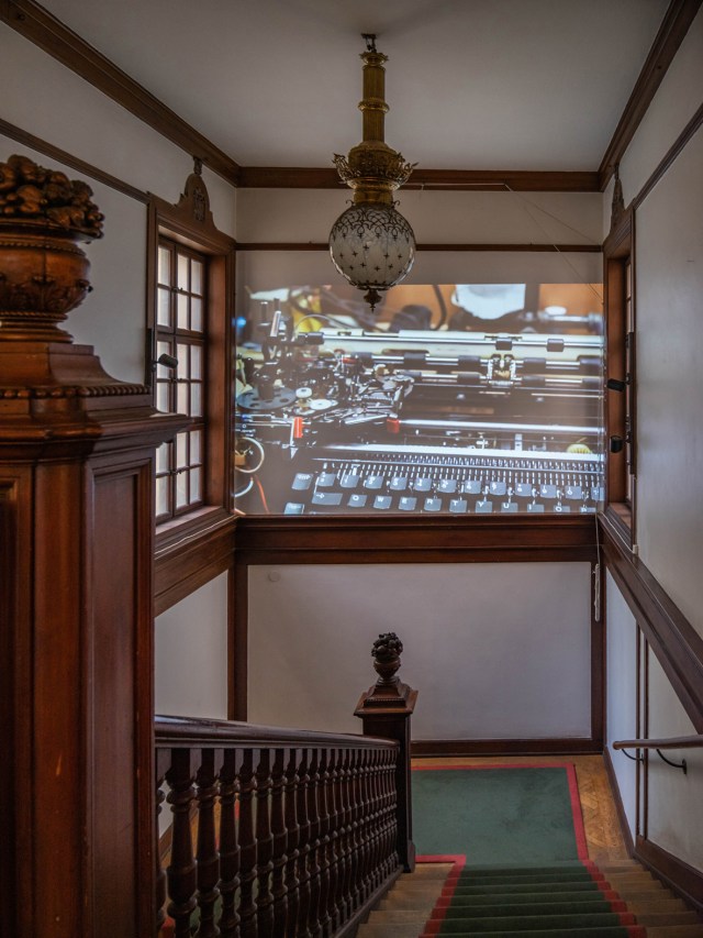 Sculpture for Zachrisbergs Parc Årstaberg, Liljeholmen Stockholm. Under work, commissionen by Stockholm konst. Keyword: pre-positions. Selectric typewriter.