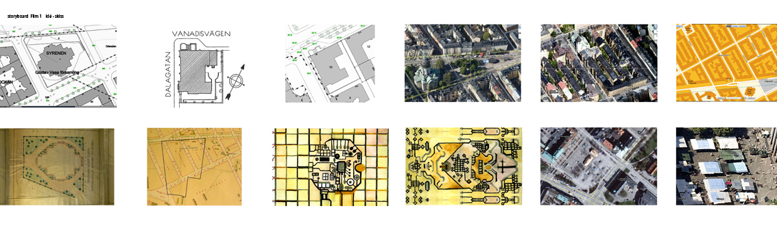 Commission Proposition for Citybanan Odenplan, 2013 Biblioskop: elevator transparent filmscreen, pilarmosaic, interactive light-installation / morsecode – underground stretching between two public libraries. Project leader: Stefan Hagdahl. SLL. Proposition Odenplan: from film storyboard, sketch for platform.