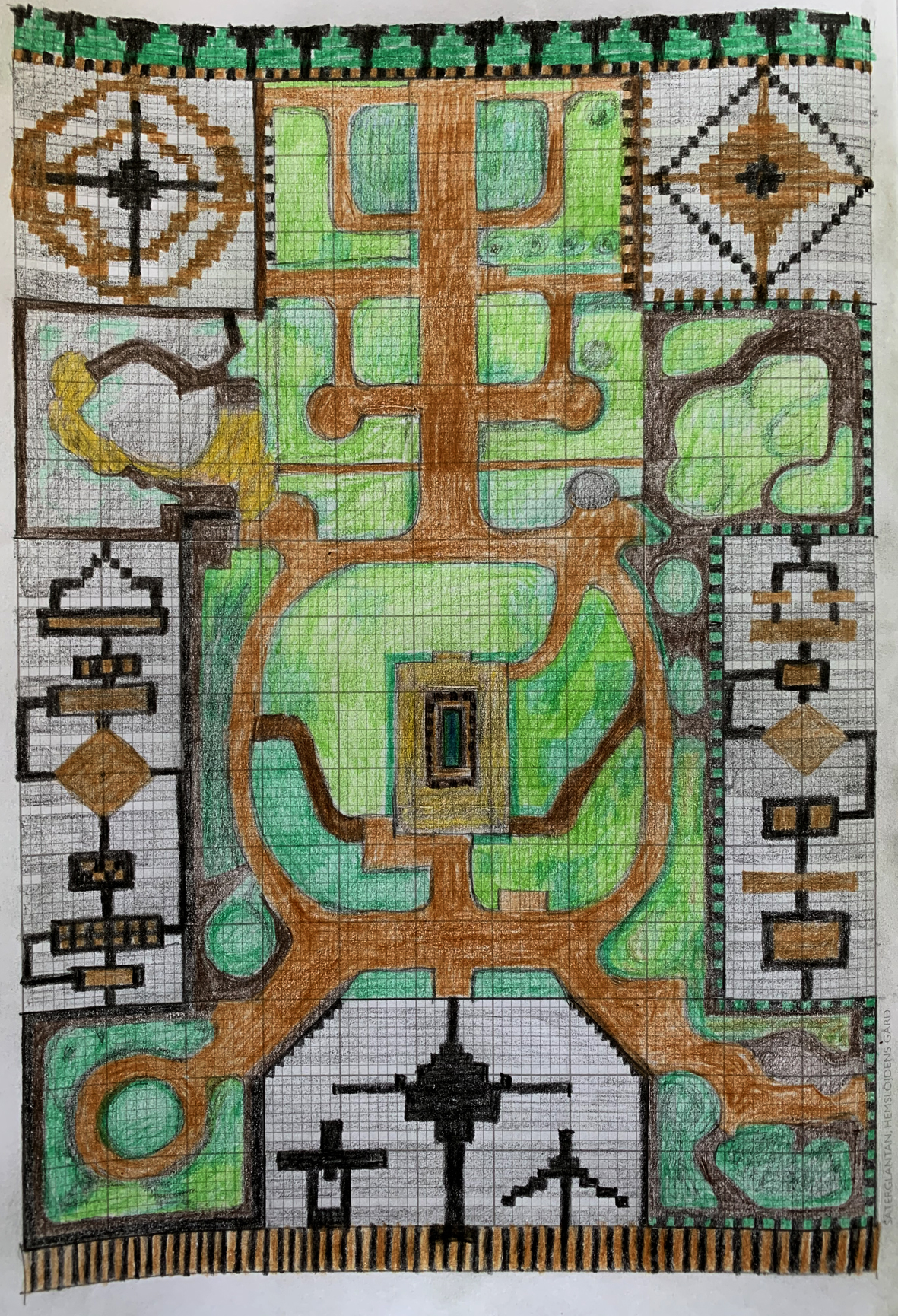 Plan over vision appearing during knotting throught covidtime from March until August 2020: Garden with bats, droners, algoritms, projectsize 2x3m / handknotting