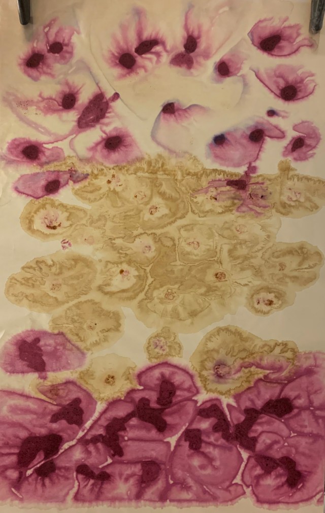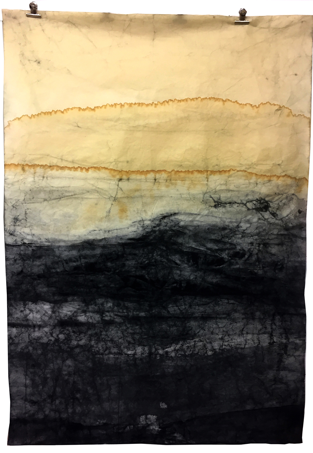 Border Dipping in paint from coffe and rose hip. Kawasaki paper 70×100 cm 2018