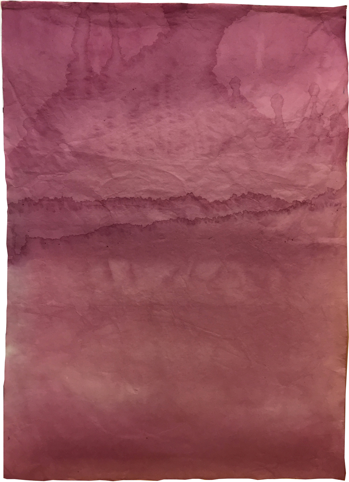 Rose Hip Dipping in paint from rose hip, kawasaki paper, 70×100 cm 2018