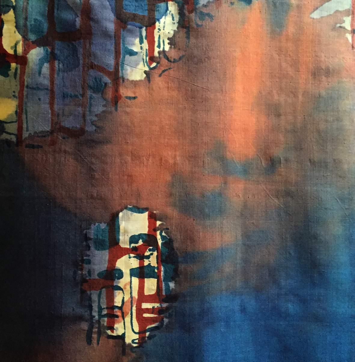 Silkeroad I and II 1989. Printed and painted on silke 1 x 3 m