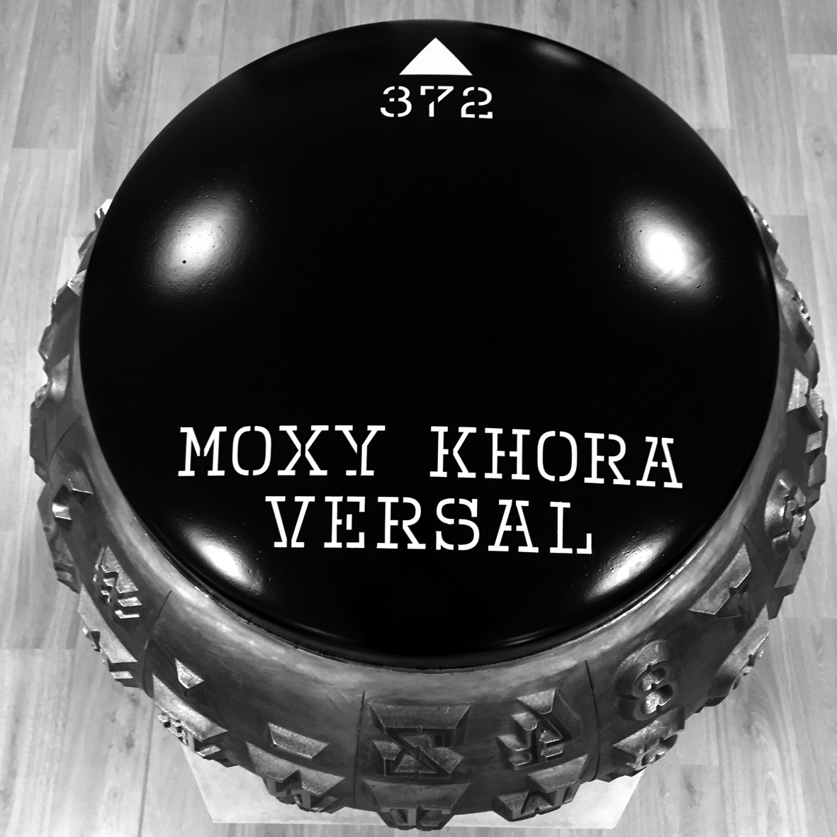 The original for MOXY KHORA is a fontbullet, 3,5 cm in diameter, from IBM Selectric II Typewriter. The first sculpture is casted in aluminum, a font globe with letters of the alphabet + characters and numbers. 100 cm in diameter. Enlarged font sphere from IBM Selectric, the first typewriter with changeable fonts and ability to edit text directly. The Selectric typewriter evolved to the word processor and the computer. The sculpture MOXY KHORA is is a sitespecific sculpture commissioned by Stockholm konst for the entrancehall at SFI Västerort in Rinkeby, Stockholm 2016.