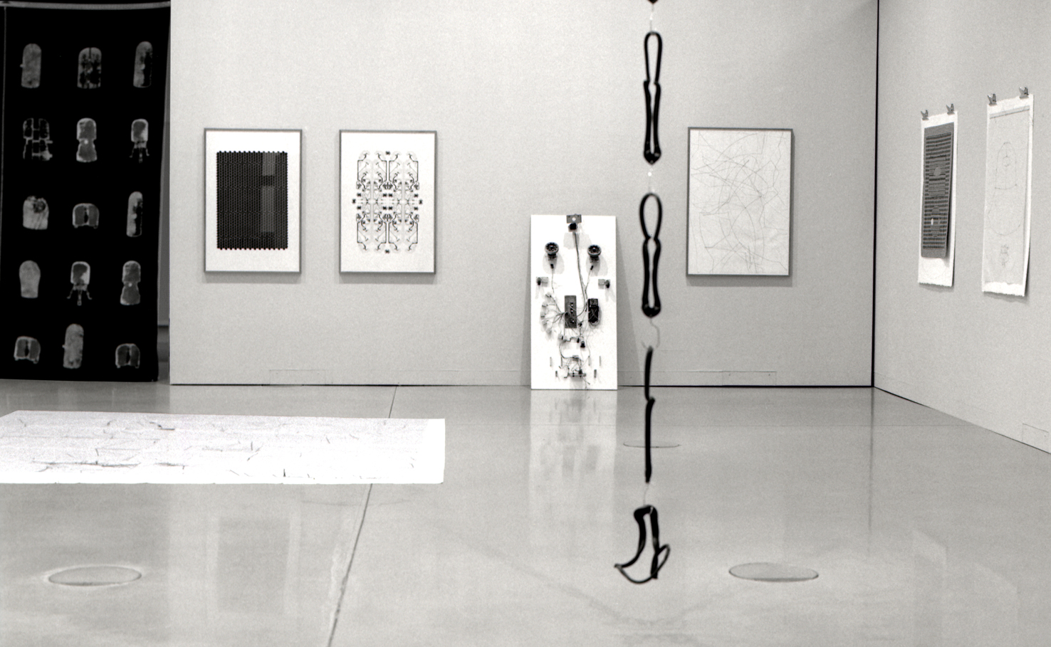 Library of the Evil Spirit and its Archive, followed by the retrospective section: Memory Spheres, Checker Hoods, From Behind, Circuitpatterns, Robotic Paths, Philosophia Perennis, Landescape, OOSOOM, The Performative Space and Paths.